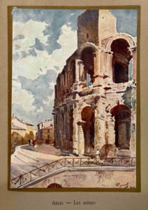FAURE (Gabriel). Aux bords du Rhône de Lyon à Arles. Grenoble, J. Rey, 1922. Demi-chagrin rouge avec coins, tête dorée (Reliure de l'éditeur). Ouvrage orné d'aquarelles de Pierre Vignal reproduites en couleurs. Tirage à 1075 exemplaires justifiés par l'éditeur. Tête et coins frottés.