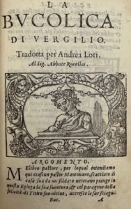Venise, Domenico Farri, 1573. 3 parties en un volume in-8, vélin rigide à recouvrements, dos lisse, pièce de titre rouge, tranches jaspées (Reliure du XVIIIe siècle).Rare édition illustrée des œuvres de Virgile traduites en vers italiens, imprimées en italiques dans un format portatif.