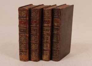 1715-1735. 4 volumes in-12, basane brune, dos à nerfs ornés, double filet à froid d'encadrement sur les plats, tranches jaspées (Reliure de l'époque).Édition originale et première édition illustrée, très rare.