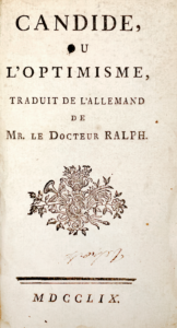 [VOLTAIRE] — Candide, ou l'Optimisme, traduit de l'allemand de Mr. le Docteur Ralph. S.l.n.n. [Genève, Cramer],