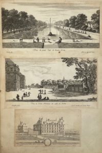 Il s'agit pour la plupart de vues d'Israël Silvestre, mais aussi de Pérelle, Goyrand, Aveline, Le Blond, etc., ainsi qu'une grande planche repliée par Guilliam van Nieuwelandt (abîmée).