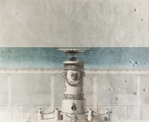 Projet de vasque à l’antique. Plume et encre noire, lavis gris et aquarelle.
