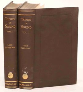Londres et New York, Macmillan & Co., 1894-1896. 2 volumes in-8, bradel percaline brune, titre doré au dos, en partie non coupé (Reliure de l'éditeur).Seconde édition revue et augmentée de cet important traité d'acoustique publié en 1877.