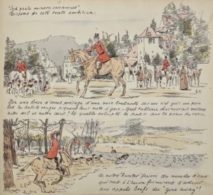 In-4 oblong, bradel percaline grège illustrée en couleurs (Reliure de l'éditeur).Unique édition de cet album cynégétique d'une grande rareté.