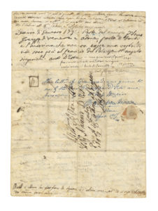 Al verso della seconda carta il nome ed il recapito del destinatario, insieme ad alcune note successive (antiche) di altre mani.