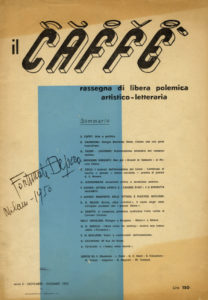 Il numero della rivista Il caffè / rassegna di libera polemica artistico-letteraria è del novembre - dicembre 1950 (anno II) e contiene anche due testi di Depero : "Lettera aperta a Cahiers d'art e a Benedetta Marinetti (pp. 10-11) e il "Manifesto della pittura e plastica nucleare" (pp. 12-15). (1)