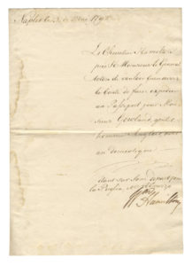 HAMILTON William —Lettera manoscritta con firma autografa. — Datata 3 maggio 1792, Napoli.
