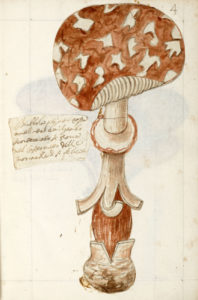 Al recto delle prime 116 carte sono applicati disegni di funghi realizzati a mano, acquerellati a colori, ritagliati da altre carte di grammatura superiore.