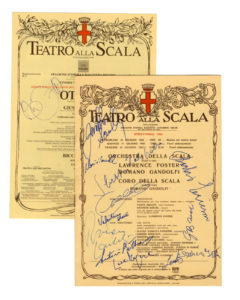 RACCOLTA di 20 locandine del Teatro alla Scala con firme autografe di vari artisti. 1980-2000.