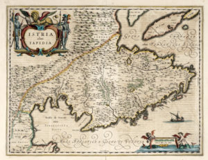 BLAEU Willem Janszoon— Istria olim Iapidia. — Amsterdam : Johannes Blaeu - 1648. — Incisione in rame. mm — Foglio : mm 500 x 600.