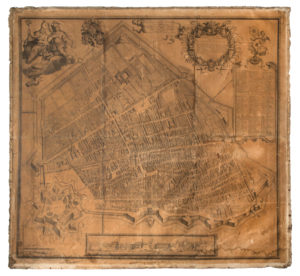 ♦ Rarissima e grande pianta della città di Ferrara figurata con il suo alzato, in 6 fogli su tela a stacchi.