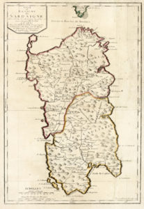NOLIN Jean Baptiste — Isle et Royaume de Sardaigne. — Incisione in rame con confini in coloritura. mm 420 x 310. — Foglio : mm 445 x 325.