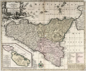 SEUTTER Georg Matthäus — Mappa Geographica totius Insulae et Regni Siciliae / Carte Particuliere de l'Isle de Malte et des isles Voisines. — Da Atlas Novus sive Tabulae Geographicae Totius Orbis Faciem, ...Aeri Incisae et Venum Expositae a...