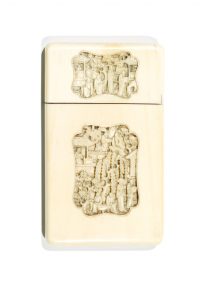 finement sculpté de quatre médaillons à décor de personnages. Chine, Canton fin XIXe siècle. H : 11 cm