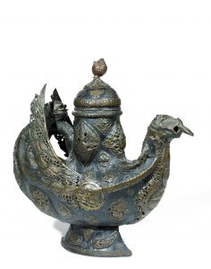 Grand brule parfum en bois et cuivre représentant un Garuda.