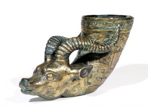 Rhyton en bronze à tête de daim orné de motifs archaïsants.