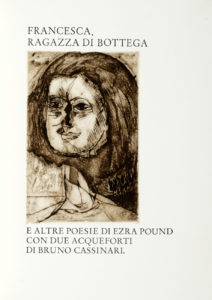 POUND Ezra— Francesca — ragazza di bottega e altre poesie [...] con due acqueforti di Bruno Cassinari. — (Al colophon:) Verona : Gino Castiglioni e Alessandro Corubolo - 1968. — In-4° (mm 275 x 200).