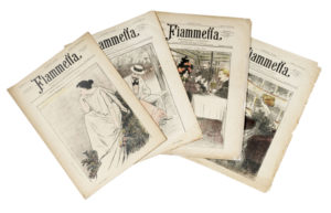 - Fiammetta. Ebdomadario illustrato. N. 2, 8, 9 anno II, 1897. 3 numeri in 3 fascicoli in-folio (mm 420x310).