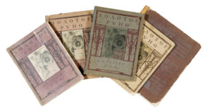 ZOLOTOE runo. — La Toison d'or. — [Moscow : s.e. - 1906-1909]. — 18 numeri in 11 volumi, di cui 3 in-4° grande (mm 348x310) e 8 in-4° (mm 315x225).