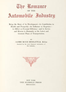 DOOLITTLE James Rood — The Romance of the Automobile Industry. — New York : the Klebold press - 1916. — In-4° (mm 275 x 190).