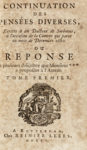 - Id., Continuation des pensées diverses [...] Tome premier (-second). Rotterdam : chez Reinier Leers, 1705. 2 volumi in-12° (mm 155x93).