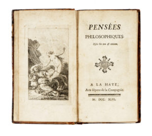 DIDEROT Denis — Pensées philosophiques. — A La Haye : aux dépens de la Compagnie - 1746. — In-12° (mm 157 x 90).