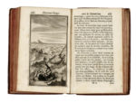 Legatura in piena pelle, con cornici concentriche impresse a secco ai piatti, fregi fitomorfi e titoli in oro al dorso a 5 nervetti e tagli rossi. Forellini di tarlo e mancanze alle punte e al dorso.
