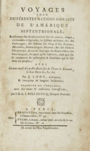 LONG John — Voyages chez differentes nations sauvages de l'Amerique septentrionale...— A Paris : chez Prault l'aine [...] Fuchs, II année de l'Ere Répubblicaine [1794]. — In-8° (mm 200 x 122).