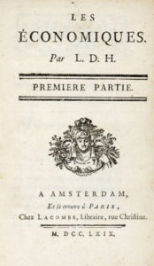 MIRABEAU Victor — Les économiques [...]. — Premiere (-seconde) partie. — A Amsterdam : chez Lacombe, libraire rue Christine - 1769. — 2 volumi in-12° (mm 157 x 97).