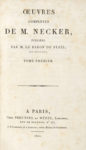 NECKER Jacques — Œuvres complètes de M. Necker publiées par M. le Baron de Stael, son petit-fils. — Tome premier (-quinzième). — A Paris : chez Treuttel et Würtz - 1820-21. — 15 volumi in-8° (mm 205 x 125).