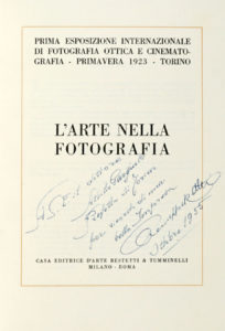 L'ARTE NELLA FOTOGRAFIA. — Prima esposizione internazionale di fotografia e ottica cinematografia - primavera 1923 - Torino. Milano, Roma : Casa editrice d'arte Bestetti & Tumminelli - [1924]. — In-folio (mm 340 x 245).
