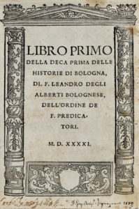 ALBERTI LEANDRO — Libro primo (-decimo) della deca prima delle historie di Bologna… — S.l. : s.e. - 1541. (Al colophon:) Nella città di Bologna : per Bartholomeo Bonardo e Marc Antonio Grossi - 1543. — In-8° (mm 200 x 137).