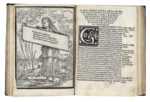 Carte [212]. I primi 5 libri iniziano con proprio frontespizio architettonico inciso in legno al recto e con la xilografia a piena pagina dell'allegoria della Virtù che sorregge il cartiglio di presentazione del libro al verso.