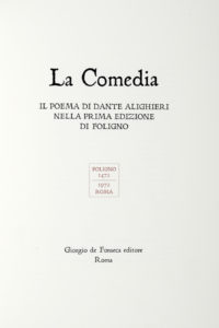 ALIGHIERI DANTE — La Comedia. [...] nella prima edizione di Foligno. — Roma : Giorgio de Fonseca editore - 1972. — 3 volumi in-4° (mm 320 x 225).
