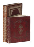 Legatura coeva in pieno marocchino rosso, con ricche decorazioni in oro ai piatti e al dorso, e titoli impressi in oro ai comparti del dorso a 4 nervi.