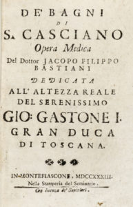 BASTIANI Jacopo Filippo — De' bagni di S. Casciano opera medica... — In Montefiascone : nella Stamperia del Seminario - 1733. — In-8° (mm 165 x 105).