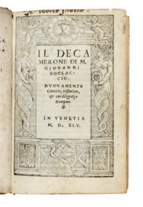 BOCCACCIO Giovanni — Il Decamerone [...] nuovamente corretto, historiato & con diligenza stampato. — In Venetia : s.e. - 1545. (Al colophon:) Vinegia : appresso di Agostino Bendone— 1545.