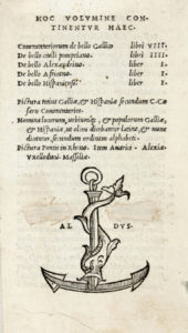CAESAR Gaius Julius — Hoc volumine continentur haec. — Commentariorum De bello Gallico…— (Al colophon:) Venetijs : in aedibus Aldi— et Andreae soceri - 1519 mense novemb. — In-8° (mm 155 x 90).
