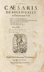 CAESAR Gaius Julius — De Bello gallico commentarii VII [...] cum scholiis Franc.— Hotomani iurisc. — Ful. Ursini Romani, Ald. Manutij p.f. — Lugduni : Apud Bartholomaeum Vincentium - 1574.