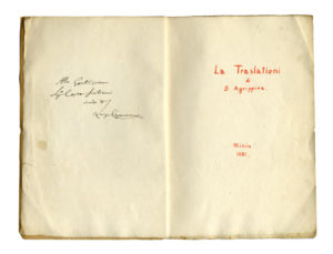 CAPUANA Luigi — La Traslationi di S. Agrippina. — In-8° (150 x 220 mm). — Pagine 12.