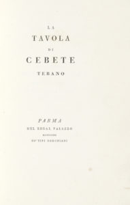 CEBES Thebanus — La Tavola di Cebete Tebano. — Parma : Nel Regal Palazzo - 1793. — 2 parti in 1 volume in-4° (mm 226 x 150).
