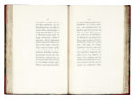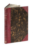Legatura ottocentesca in mezzo marocchino rosso con punte, piatti in carta marmorizzata, e titoli in oro al dorso a 5 nervetti; sguardie e contropiatti in carta caillouté.