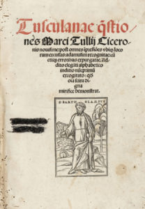 CICERO MARCUS TULLIUS — Tusculanae quaestiones. — (Al colophon:) Impressaeque Venetiis : summa diligentia per Augustinum de Zannis de Portesio - 1516 - die XV Februarii. — In-folio (mm 293 x 205).