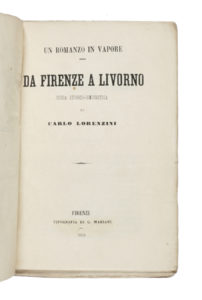 COLLODI Carlo — Un romanzo in vapore. — Da Firenze a Livorno. Guida storico-umoristica. — Firenze : tipografia di G. Mariani - 1856. — In-16° (mm 150 x 97).