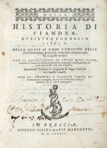 CORNEJO Pedro — Della historia di Fiandra [...] Libri X... — In Brescia : appresso Pietro Maria Marchetti - 1582. — In-4° (mm 210 x 140).