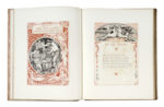 Legatura originale in piena tela con ampie cornici concentriche e illustrazioni impresse in oro e terracotta ai piatti.