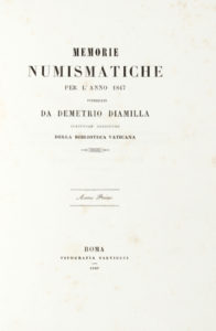 DIAMILLA Demetrio — Memorie numismatiche per l'anno 1847.— Roma : Tipografia Salviucci - 1847. — 3 parti in 1 volume in-folio (mm 310 x 225).