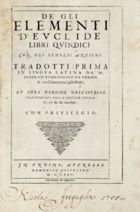 colophon:) — In Urbino : In casa di Federico Commandino - 1575. — In-folio (mm 300 x 210).