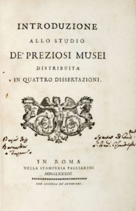 FALLETTI Tommaso Vincenzo — Introduzione allo studio de' preziosi musei distribuita in quattro dissertazioni. — In Roma : nella stamperia Pagliarini - 1783. — In-8° (mm 206 x 130).
