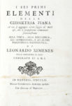 - Ximenes Leonardo, I sei primi elementi della geomeria piana a cui si aggiugne alcun saggio de' molti usi... — In Venezia : Presso Giambattista Albrizzi, 1752. In-8° (mm 193x130). Pagine[12], XXXII, 354 [i.e. 336] + 10 carte di tavole calcografiche fuori testo più volte ripiegate e numerate I-X.